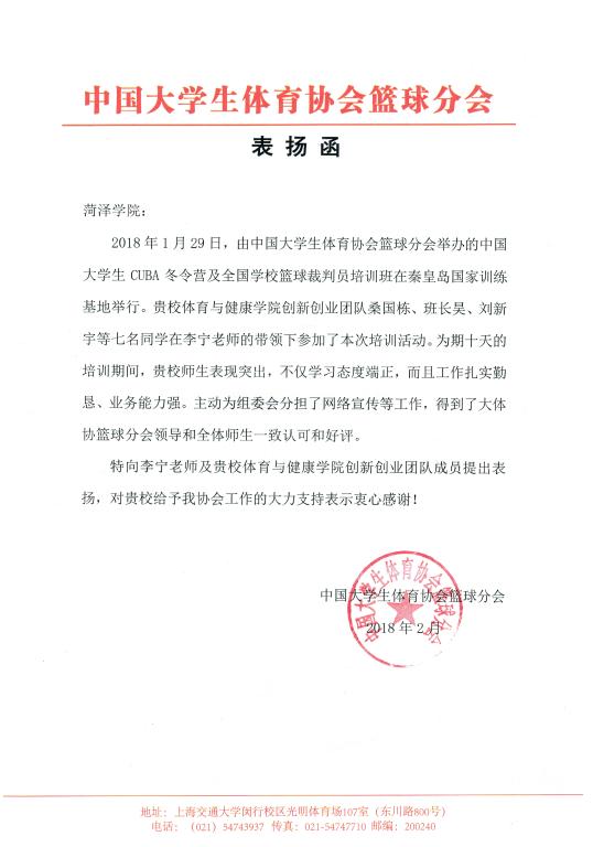2018年1月29日至2月7日,伟德国际1949体育与健康学院大学生创新创业团队(星程体育文化有限公司)王宗旭、刘新宇、庄园、桑国栋、班长昊、李浩然、曲同虎七名学生在指导老师李宁老师的带领下参加了中国大学生体育协会篮球分会在秦皇岛国家训练基地举办的全国大学生CUBA冬令营和全国学校篮球裁判员“二晋一”培训班活动。此次培训班讲师团由终身荣誉国际级裁判王锦明,国际级裁判杨茂功,以及中国篮协骨干技术代表和裁判员郑秀丽,汪玲玲,樊金东,李荣,胡卫东,邵民和,柳学林,由世梁,曾洪涛,及庆等12位国内知名篮球裁判员专家组成讲师团队,来自全国各个高校的160余名学员参加了此次活动。